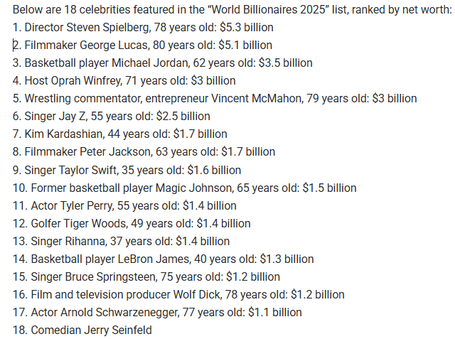 18 stars on the billionaire list in 2025
